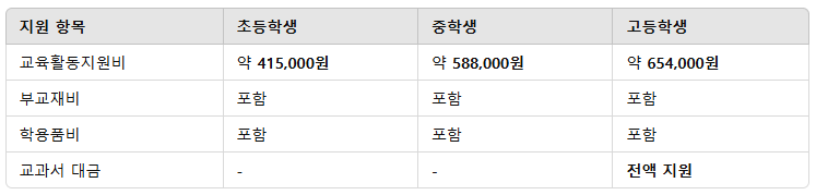 📌 교육비 지원 항목은 지역별로 차이가 있을 수 있으므로, 해당 교육청 홈페이지에서 구체적인 내용을 확인하는 것이 중요합니다.