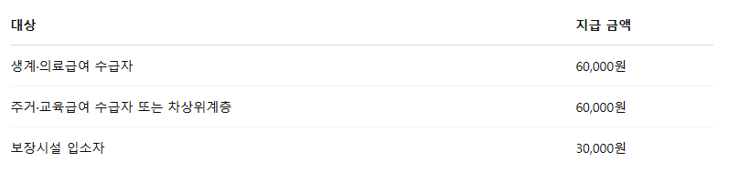 ※ 부가급여는 수급자 여부(생계급여, 의료급여 등)에 따라 차등 지급됩니다.